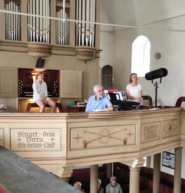 Großtreben/Dautzschen. Ende August 2021 fand im Kirchenkreis Wittenberg das 2. Orgelcamp statt. Organisiert und durchgeführt von der Akademie für das Ehrenamt und dem Kantorenpaar Eva-Maria und Otto-Bernhard Glüer waren die drei Tage wieder ein voller Erfolg. Ziel des Orgelcamps ist die Suche und Gewinnung von Ehrenamtlichen, die sich mit dem Orgelspiel vertraut machen wollen und die nach dem Orgelcamp weiter kirchenmusikalisch tätig bleiben wollen sowie irgendwann den Schritt wagen, im eigenen Gottesdienst oder auf Anfrage, z.B. aus der Nachbarkirchengemeinde, die Orgel zu spielen. Eva-Maria Glüer: „Wir hatten bewusst als Zielgruppe die 11- bis 77-jährigen angesprochen – denn für das Erlernen des Orgelspiels ist keiner zu jung oder zu alt“. Aktuell reichte in diesem Jahr die Altersspanne von 12 - 61 Jahre. Das generations-übergreifende Arbeiten ist immer wieder sehr wertvoll.